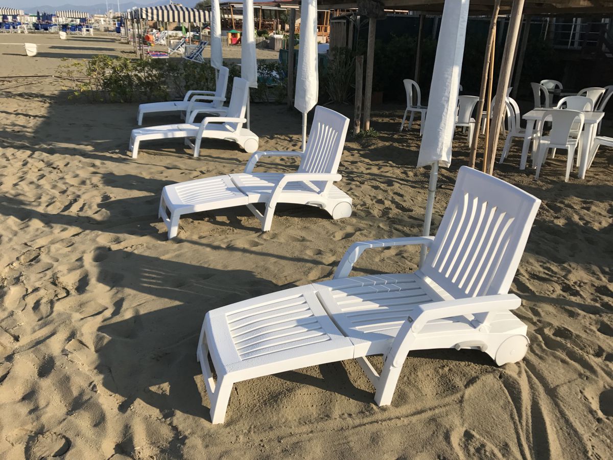 Для размещения на этом пляже, расположенном на берегу песчаного пляжа, было решено выбрать несколько вариантов шезлонгов.